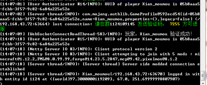 玩家绑定QQ过后进入游戏需要在群内输入指定验证码才能进入游戏