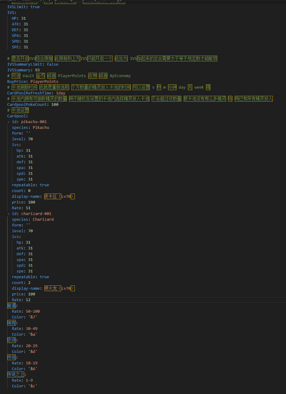 - 全服广播:抽到稀有精灵自动公告,含概率与稀有度 与精灵名