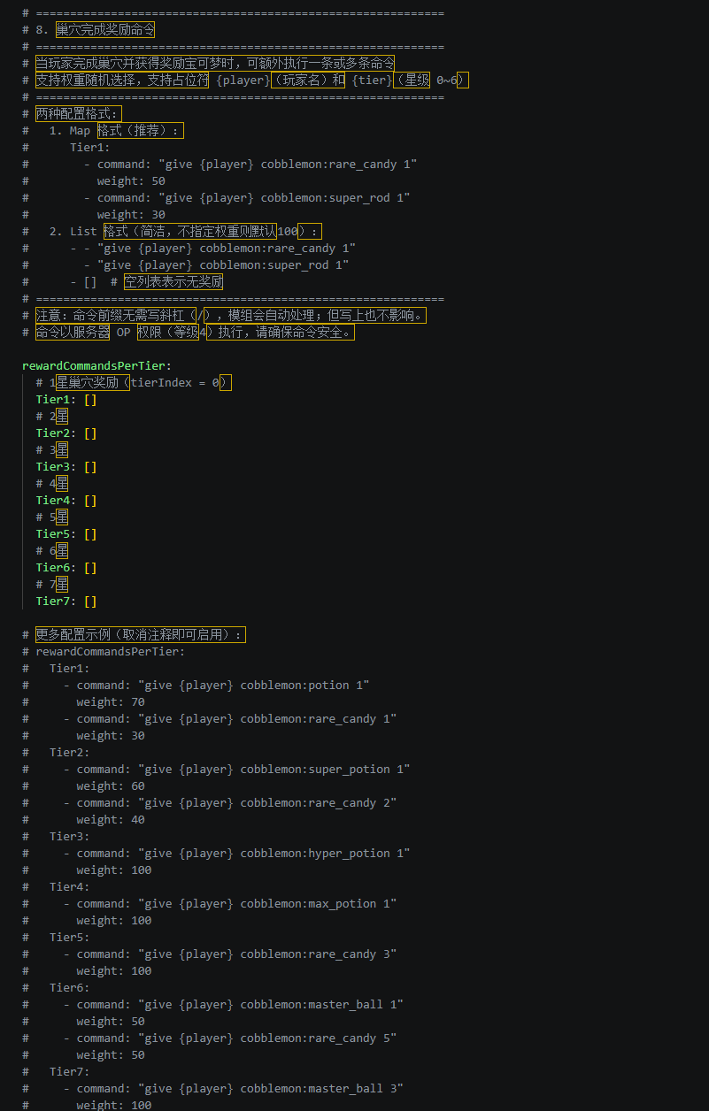 前置模组为Cobblemon Raid Dens 注意识别Fabric及Neoforge 配置文件将生成于服务器Config文件夹下 任何问题联系QQ:23628528 本模组可单独存在于客户端和服务端 任选无需同步 巢穴拓展.png 78.3 KB · 查看: 14
