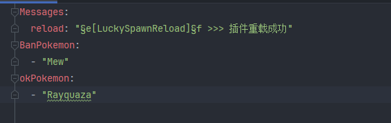 当插件检测到生成了BanPokemon列表中的宝可梦将回自动随机替换成okPokemon中的任意一只宝可梦