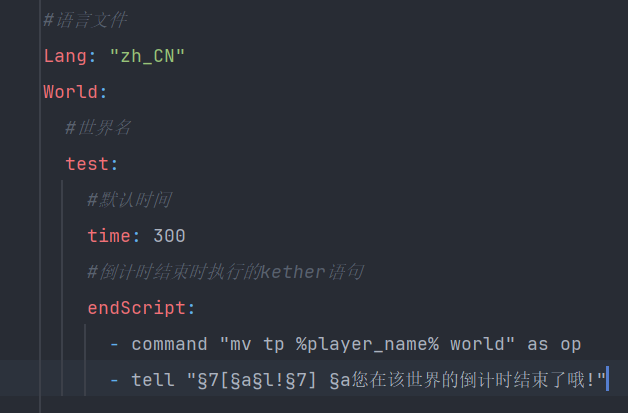 - tell "§7[§c§l!§7] §e您在该世界的倒计时就剩10秒了哦!"