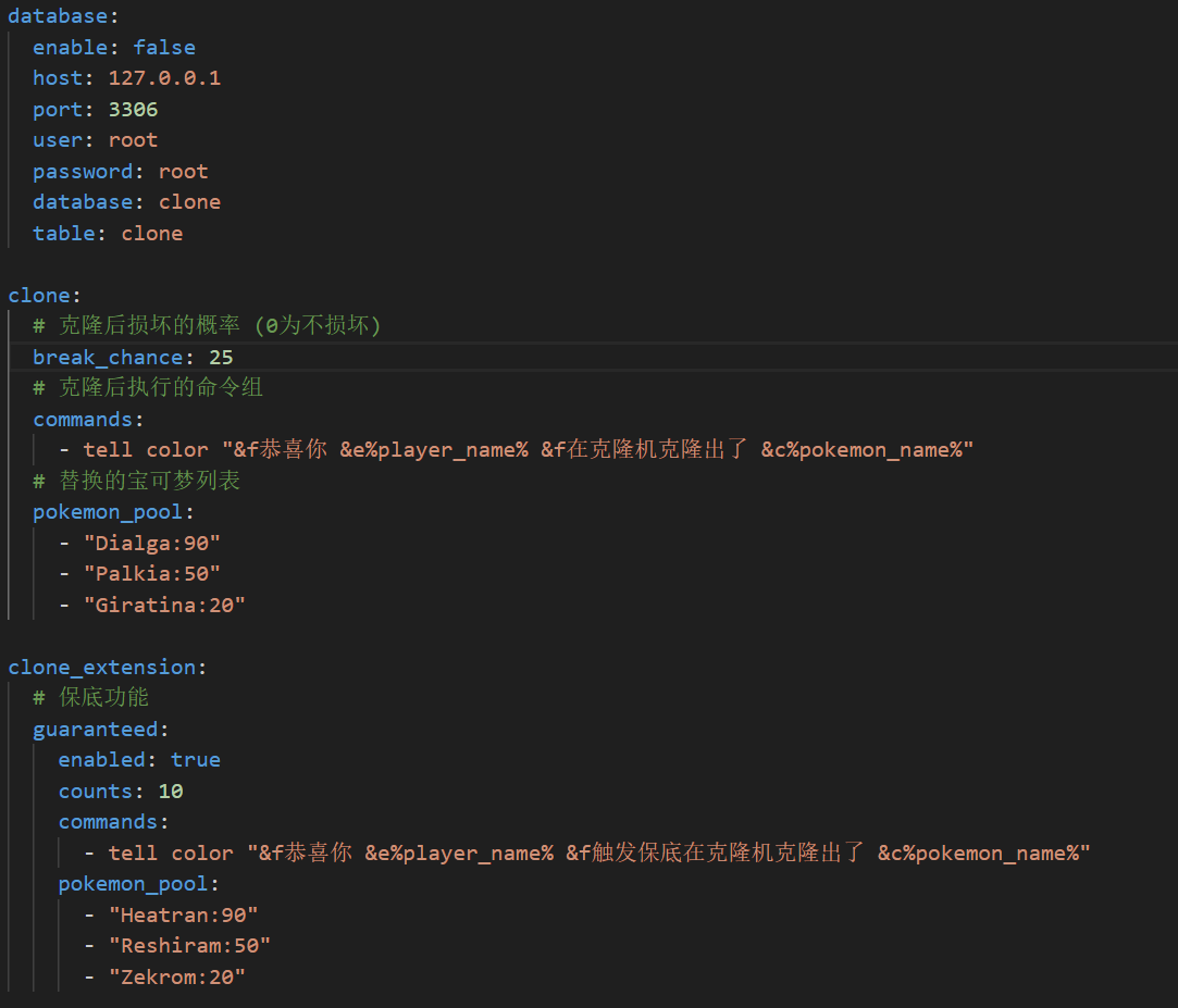 芬达呐 提交新资源: Clone — 你的克隆机何必只能出超梦和百变[重构版] - 狗哥的克隆机不更新1.16.5了,我自己重新写了一个克隆机 1.配置文件浏览附件13649 2.指令 clone reload 重载 3.和狗哥的区别 狗哥的版本已经不适应1.16.5的9.1.10以后的mod 4.未完成的功能 点击提示什么精灵 保底papi 变量 【我会努力更新的!!】 点击展开... 阅读关于此资源更多信息...