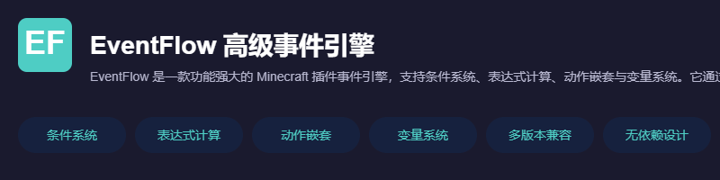 Naixi Lv.1 泥土 高级创作者 2020-12-05 55 16 0 钻石 0.00 钻石 金锭 4,197 金锭 2025-12-19 #1 Naixi 提交新资源: EventFlow - 无代码构建复杂游戏机制的Minecraft事件引擎[1.12.2-1.21.X] - 条件驱动·表达式计算·动作嵌套·变量管理 浏览附件14292 插件维基:https://wiki.owolink.org/ QQ交流群: 1070548751 点击展开... 阅读关于此资源更多信息...