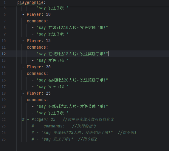 jiuxixi 提交新资源: [极品插件] 当服务器达到特定人数发送奖励 - 发送奖励 这是一款能够判定在线玩家数的插件,当达到特定人数将会执行指令,具体可以自己研究 浏览附件10544 点击展开... 阅读关于此资源更多信息...