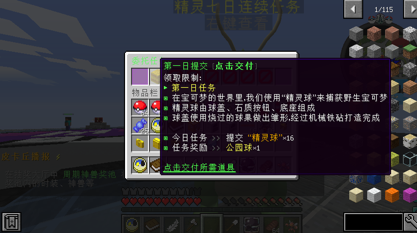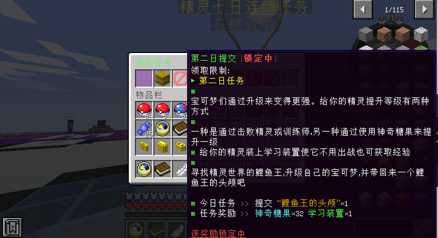 leu Lv.1 泥土 2022-12-04 14 4 0 钻石 0.00 钻石 金锭 1,861 金锭 2024-12-26 #1 leu 提交新资源: TrmenuV2.0.8 精灵七日委托任务 - 适用于宝可梦服务器的任务系统 很久之前仿写的一个菜单 现发布. 使用问题可以联系:764791791 该配置直接使用需要依赖:trmenu PokeTL PlaceHolderAPI LuckPerms 当然,改写一下只需要是trmenuv2.0.8即可 配置效果如下: 浏览附件11005 浏览附件11006 由于实力有限,配置可能写的不好,大佬勿喷,推荐小白使用。 点击展开... 阅读关于此资源更多信息...