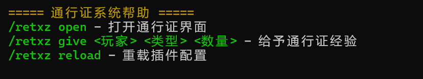 SwagRee 提交新资源: ReTXZ - 通行证插件[1.12] - 一个自动达到等级 自动发放奖励的通行证插件 (demo) 以下是通行证配置 不过主要是retxz give id 类型 经验 例如retxz give SwagRee vip 1000 奖励是自动发放的 之后可能会允许自定义 可以设置自定义奖励 自定义每日经验上限 这个retxzx open 的gui我还没搓好 目前奖励是自动发放的 可以搭配本人的RePokeCommand 实现给予通行证经验 实现多种通行证 当然这个插件原版也可以用 浏览附件11444 点击展开... 阅读关于此资源更多信息...